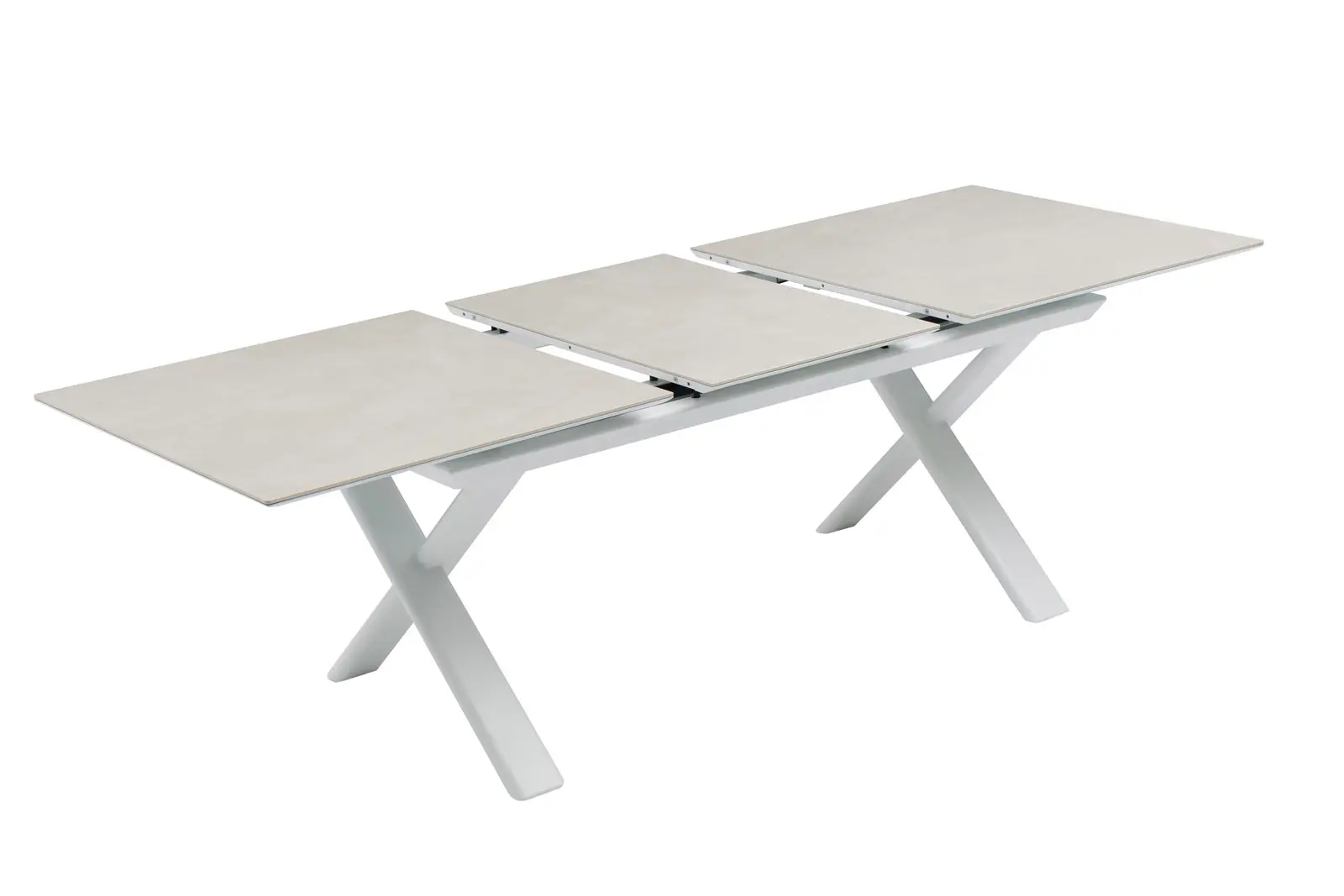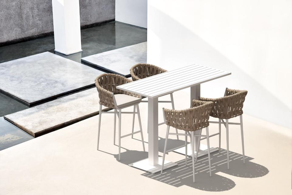 The new Levin collection redefines the outdoor dining experience with chairs that combine the lightness and strength of aluminum – available in white or anthracite with the softness of a waterproof beige fabric, ideal for withstanding daily use and outdoor conditions.