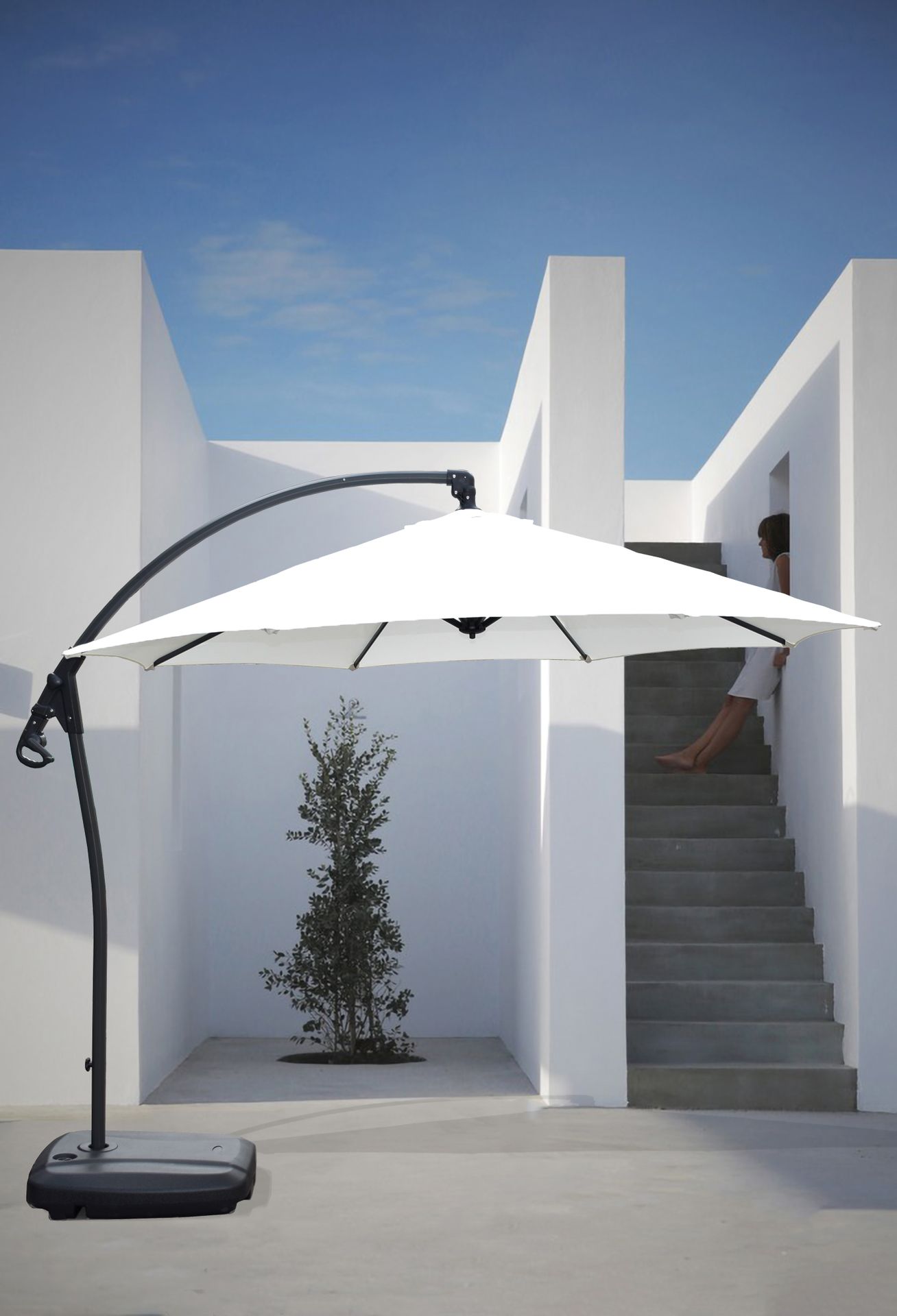 La sombrilla Eldia combina diseño contemporáneo y funcionalidad para ofrecerte sombra y estilo en tu espacio exterior.