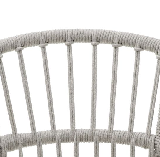 Milton armchair with white bone aluminium frame, grey rope weave and 5 cm seat cushion. Stackable