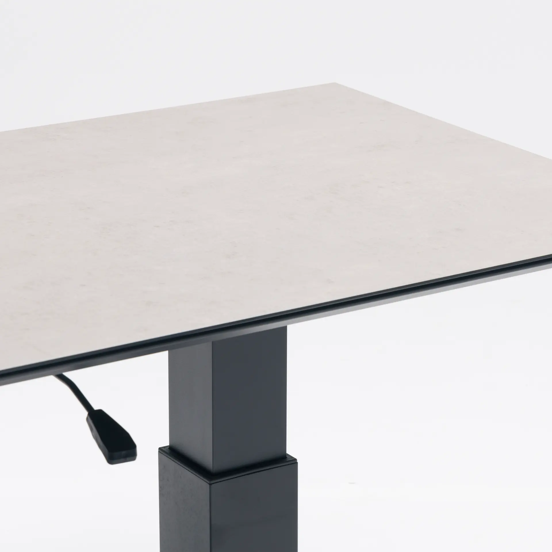 Isabela lift-up table 140x75x50/74. Anthracite aluminium frame. Ceramic glass table top with light grey 3D coating.