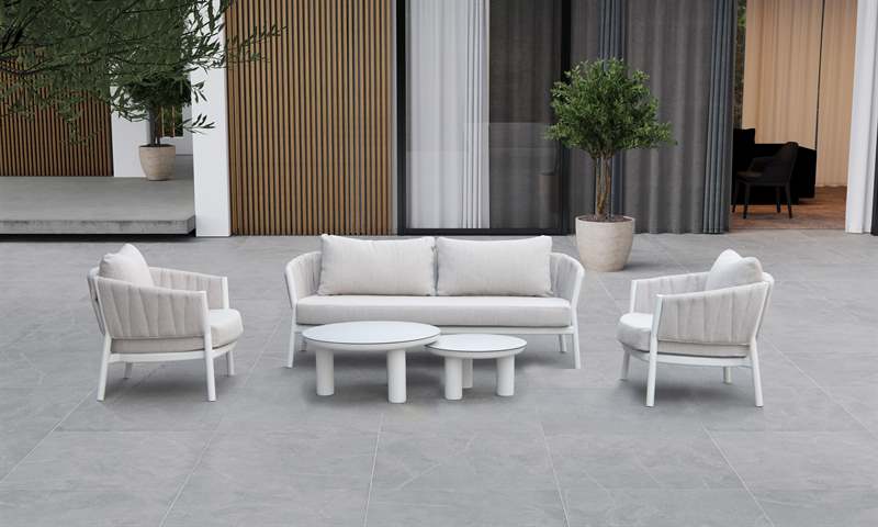 Set of 2 coffee tables Attica white aluminium coffee table with grey ceramic glass top