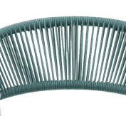 Chaise avec accoudoirs Appelton. Structure en aluminium blanc combinée à une corde nautique de couleur aqua. Coussin d'assise de 3 cm de couleur gris clair.