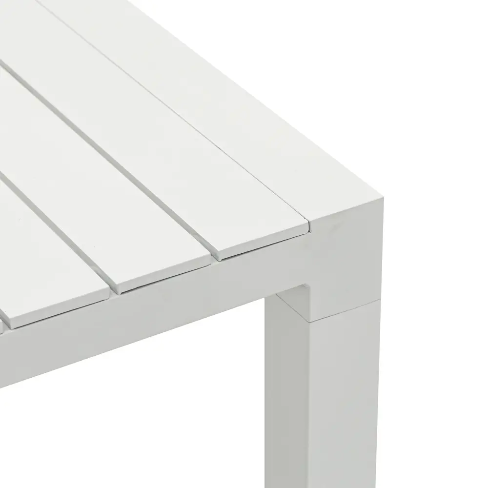 Table fixe Byron 160 cm. Structure en aluminium blanc et plateau en aluminium.