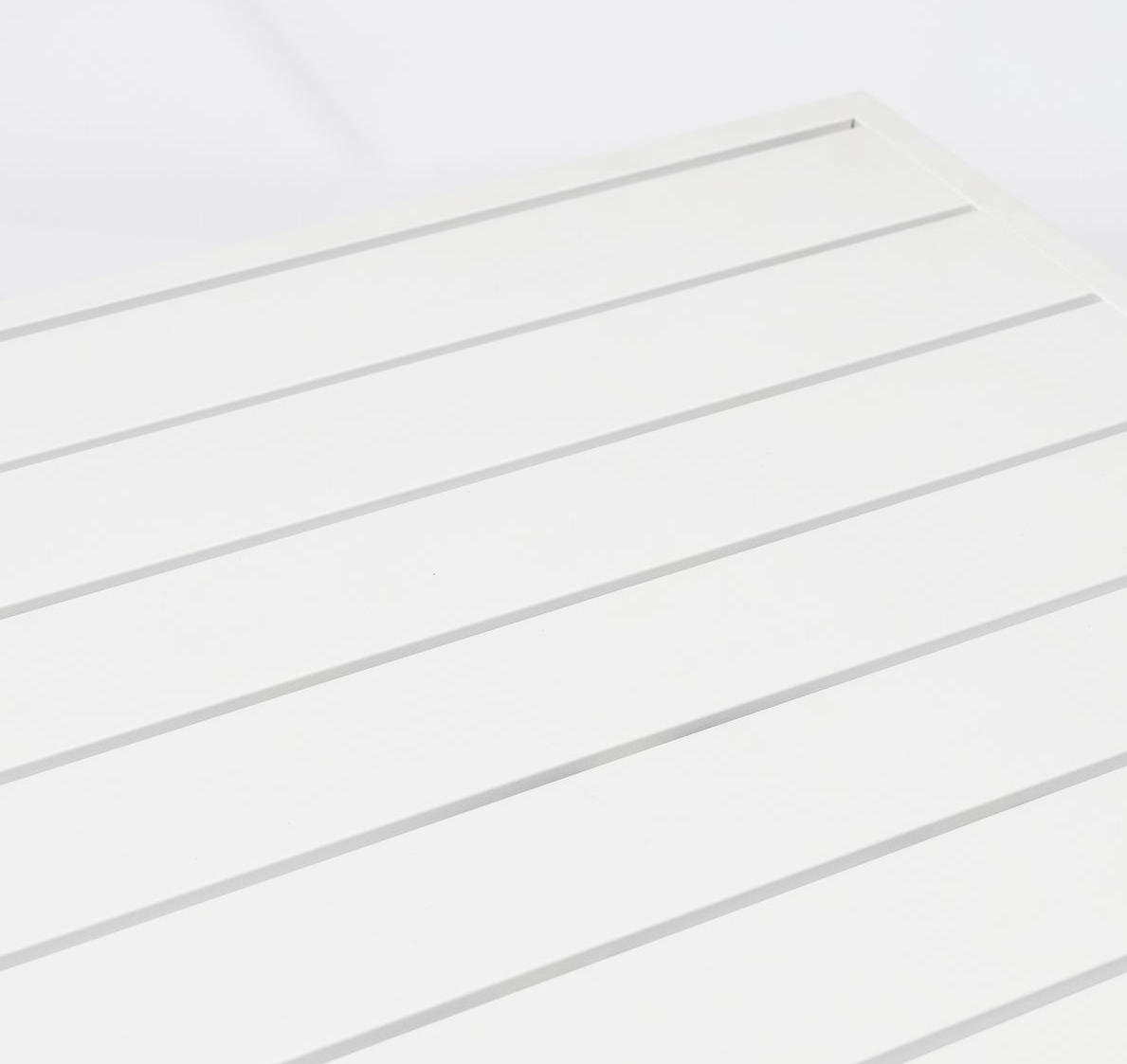 Table haute Orick, 160x70 cm. Structure et plateau en aluminium blanc.