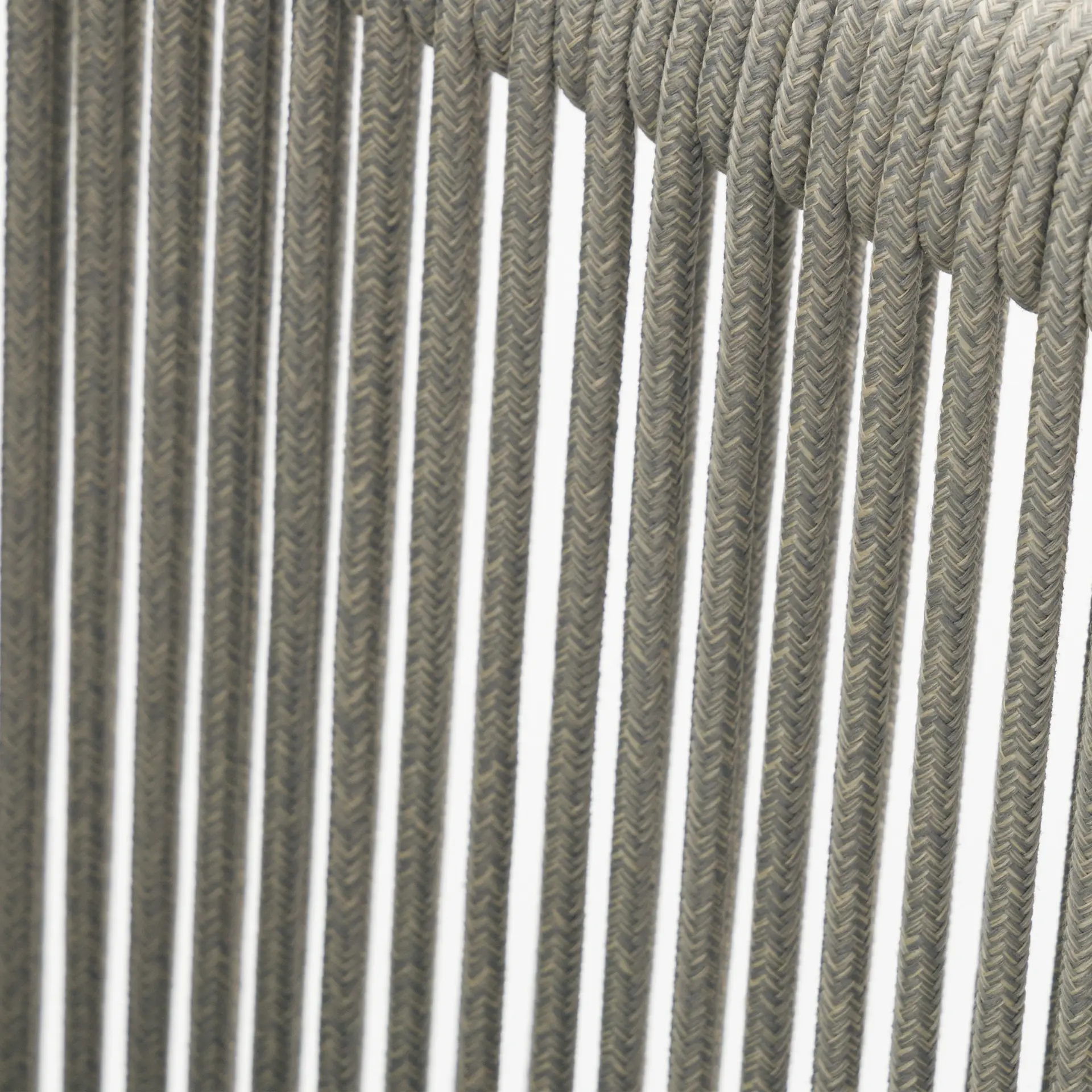 Sofá Silai de 3 lugares. Estrutura em alumínio branco combinada com corda náutica cinzento-médio de 8 mm. Almofada de assento (30 cm) e almofada de encosto (15 cm) em cinzento-médio.