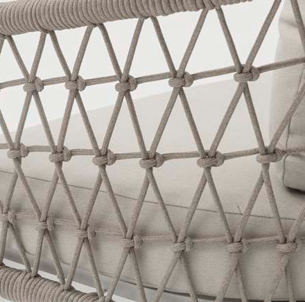 Sofá Nelayan de 3 lugares, alumínio branco com corda bege.