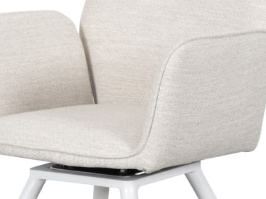 Silla de comedor giratoria Levin. Estructura en aluminio blanco combinada con textil waterproof color beige.