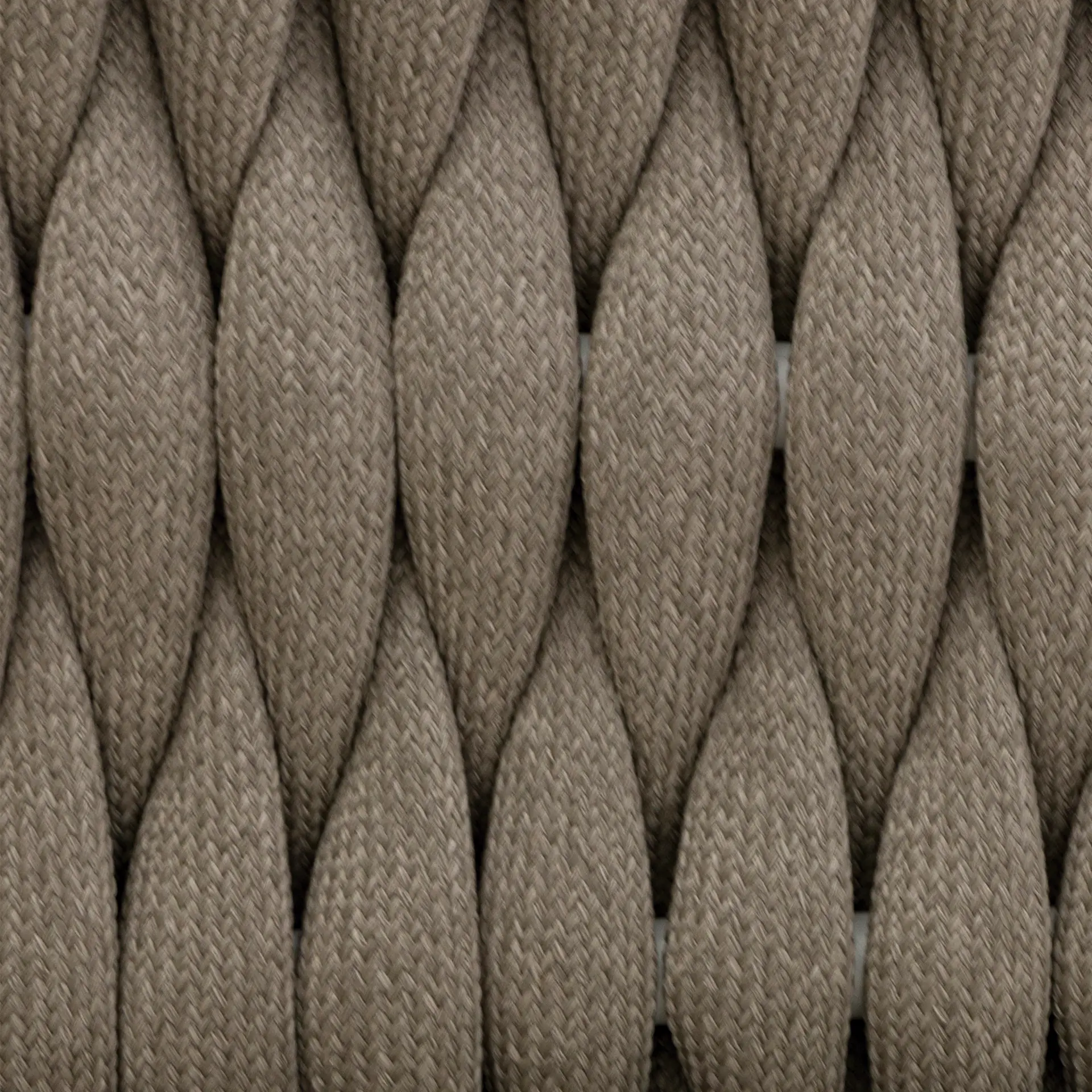 Sofá 1 plaza Anmore. Estructura en aluminio color blanco combinado con cuerda en olefina color greige. Cojín de asiento (14cm) y respaldo (20cm) color greige claro.