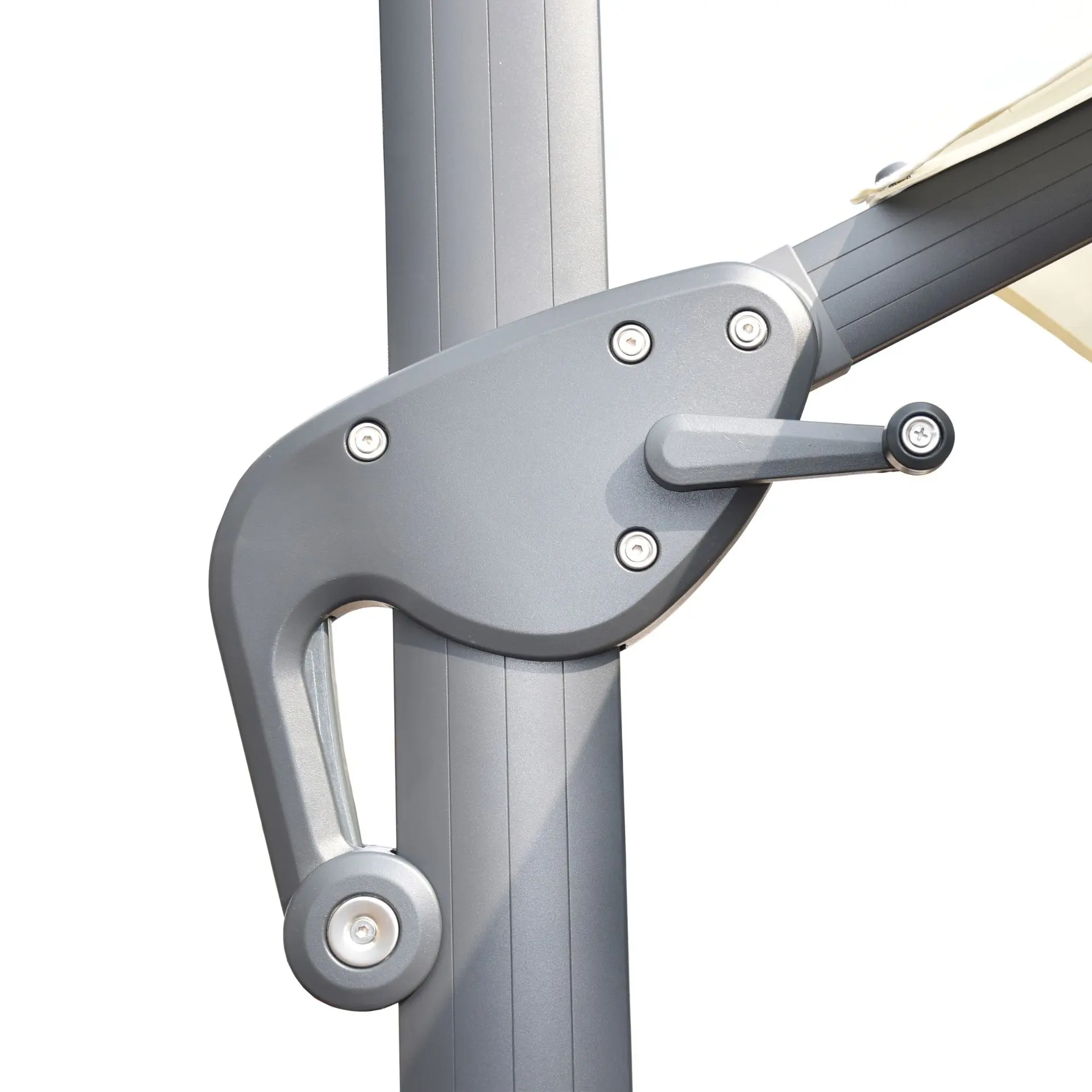 Sombrilla Kioto octogonal con lona Ø 350 cm. Estructura en aluminio con mástil de 60x100 mm color antracita y cubierta color crudo. Sistema de rotación 360º Base con ruedas Funda protectora incluida
